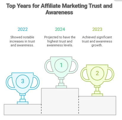 Year | Trust Level (%) | Consumers Aware of Affiliate Marketing (%) |