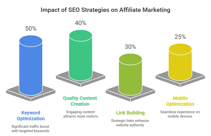 To illustrate the impact of SEO on affiliate marketing, we can look at how proper optimization can drive traffic and conversions: