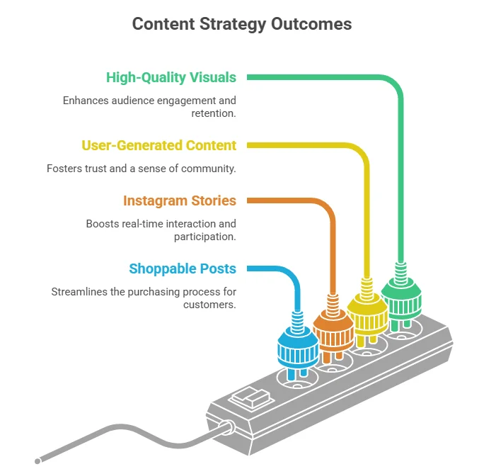 Instagram is a visual platform. High-quality images and videos are essential. Invest time in creating visually appealing content that highlights your products creatively. Use natural lighting, clear backgrounds, and consistent color palettes. Ideally, images should tell a story or reflect a lifestyle your audience aspires to achieve.