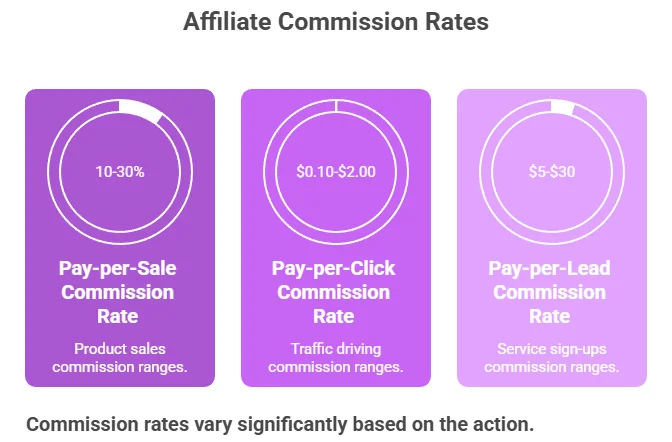 • Types of commissions (e.g., per sale, per lead, recurring commissions).