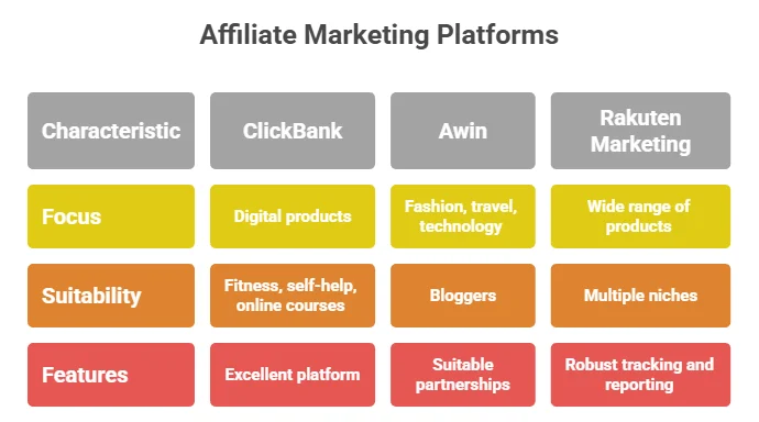 - ClickBank: An excellent platform for digital products, particularly suitable for niches like fitness, self-help, and online courses.