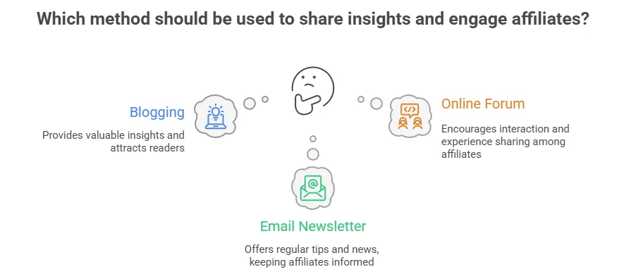 | Online Forum | Create a section on your website for affiliates to ask questions and share experiences. |