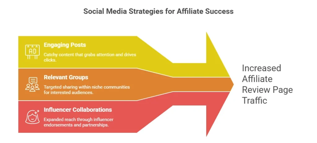 Social media is a powerhouse for driving traffic to your Affiliate Review Pages. Consider these tactics: