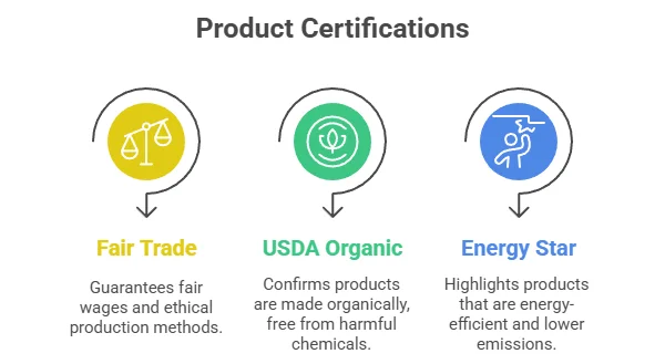 Look for eco-certifications when selecting products. Certifications such as Fair Trade, USDA Organic, or Energy Star help assure consumers that a product is environmentally friendly. A few key certifications to consider include: